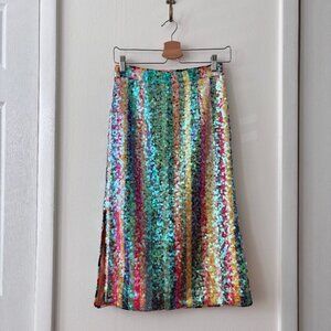 Anthropologie Maeve Rainbow Sequined Midi Skirt