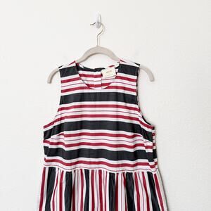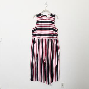 [Anthropologie] Maeve Red Blue Striped Wide Leg Sleeveless Jumpsuit Cotton Sz XL