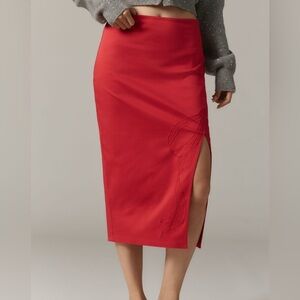 Anthropologie Maeve Red Bow Embroidered Midi Pencil Skirt Size M