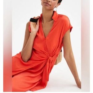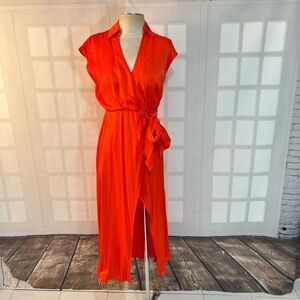 Anthropologie Maeve Red Open-Back Viscose Tie Waist Wrap Midi Dress XS