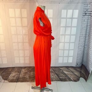 Crafted from soft, flowy viscose, this dress features a flattering wrap silhouette with a tie waist that cinches for a customizable fit. The vibrant red hue adds a bold touch, while the open-back detail provides a sophisticated yet alluring accent. With a midi-length hem and effortless drape, this dress is perfect for special occasions, date nights, or any moment that calls for a standout look.