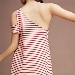 Anthropologie Maeve Red White Striped One Shoulder Dress Size Small