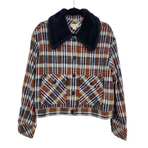 Anthropologie Maeve Retro Plaid Trucker Jacket Faux Fur Collar Size XXS