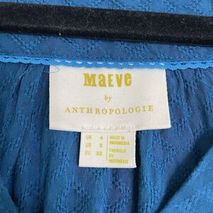 Anthropologie Maeve Rhombus turquoise blue blouse women's size 0 big buttons