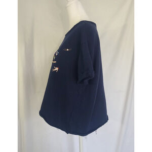 Anthropologie Maeve Riviera Navy Blue Water Sports Embroidered Tee Top Small