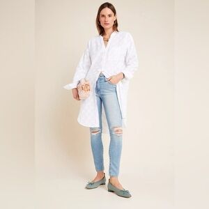 Anthropologie Maeve Roberta Textured Henley Tunic in white, Cotton