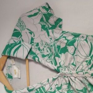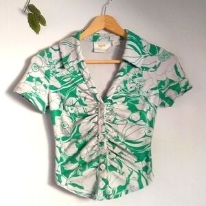 Anthropologie Maeve Ruched Blouse Floral 90s Y2K Retro Style Green White XXSmall