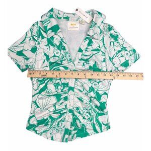 Anthropologie Maeve Ruched Floral Blouse Short Sleeve Womens Top X-Small