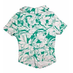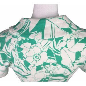 • Features a vibrant floral print in green and white