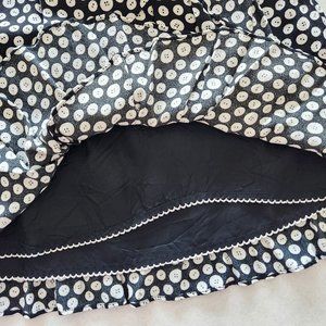 Super adorable, ruffled mini skirt from Maeve. Sold at Anthropologie, this skirt features a whimsical black and white button print rayon georgette fabric. It has a stretchy waistband and is fully lined. The lining even features a cute little trim! I used to wear this skirt when I was a size 4/6 and I used it in photoshoots. It is in excellent used condition with no stains or flaws that I have seen. This skirt is really cute for those with a quirky, whimsical style or someone who loves sewing/crafty things.
