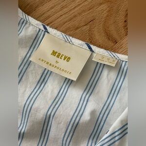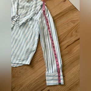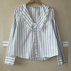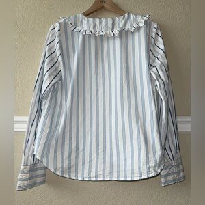 Anthropologie Maeve Ruffled Collar Buttondown Long Sleeve White Striped Size 12