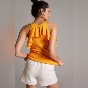 Anthropologie Maeve Ruffled Rib Halter Tank Small