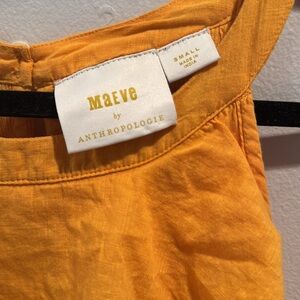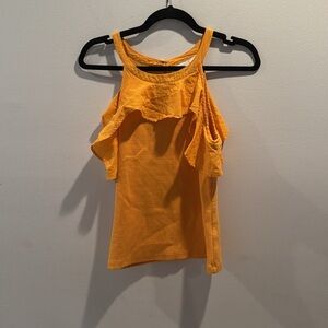 This vibrant yellow tank from Anthropologie features elegant ruffled details that add a touch of sophistication to its form-fitting design. The lightweight fabric ensures a comfortable fit, making it a perfect choice for warm weather occasions. great condition, 14.5” ptp