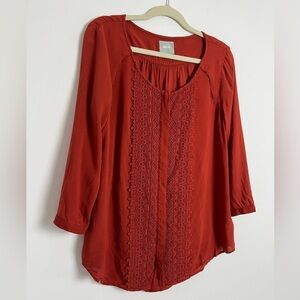 Anthropologie Maeve Rust Red Crescent Lace Street Crochet Blouse Sz 8 Bohemian