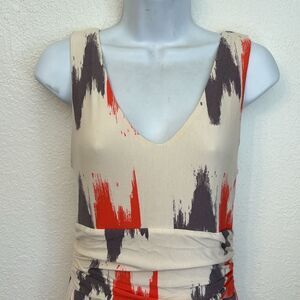 Cream, orange, and gray sleeveless maxi dress from Maeve by Anthropologie. Banded waist. Size small.