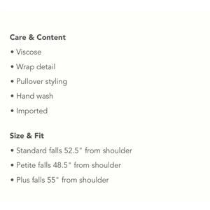 Measurements laying flat (best estimates, wrap style has lots of leeway)
