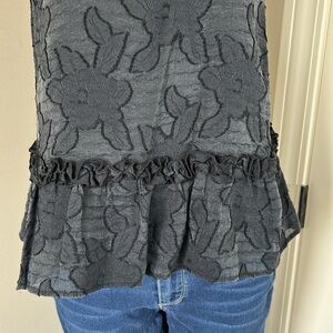Anthropologie Maeve Savannah Swing Textured Top Blouse Ruffled Black Sz 2
