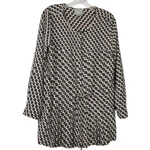 Anthropologie Maeve Selva Blouse S Black Tan Bird Print Button Pleated
