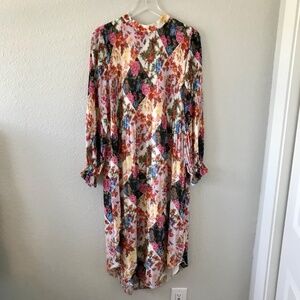 Anthropologie Maeve Shara Floral Pleated Patchwork Midi Dress S Puff Sleeves