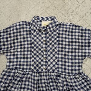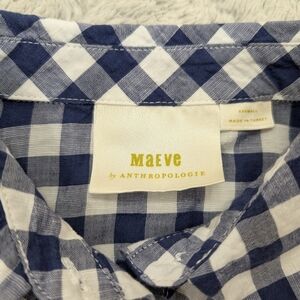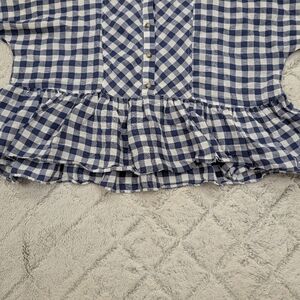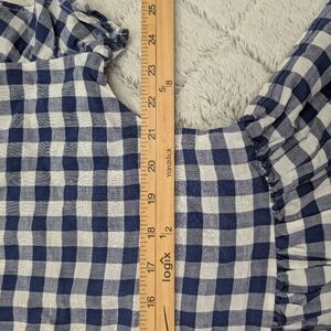 Anthropologie Maeve Shirt Womens XS Blue White Gingham Blouse Flounced Linen