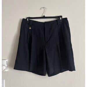 Anthropologie Maeve Shorts 14 Large Pleated Trouser Minimalist Navy Blue Preppy