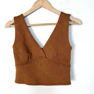 Anthropologie Maeve Side-Button Crop Top in warm pecan.
