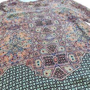 Elevate your style with this vibrant multicolor geometric pattern top, which is reminiscent of stained glass.