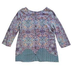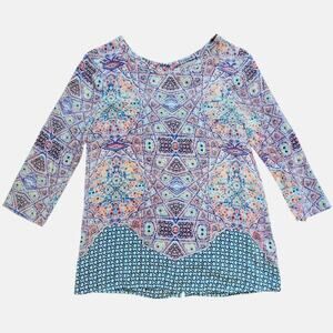 Anthropologie Maeve Sidney silk printed blouse 3/4 sleeve button back size 2