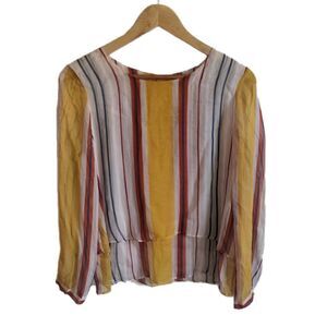 Anthropologie Maeve Silk Blouse Striped Layered Flowy Preppy Chiffon Size XS