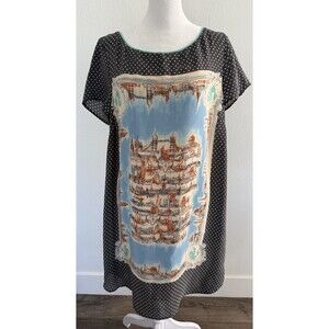 Anthropologie Maeve Silk Dress, Sketchbook Style World Sites/ Travel Size L EUC