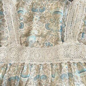 Crafted from pure silk for a fluid, elevated drape with a cream crochet cotton bodice and soft blue floral skirt. Rare silk fabrication makes this Anthropologie Maeve piece a standout โ elegant, breathable, and perfect for brunch, weddings, or resort escapes.