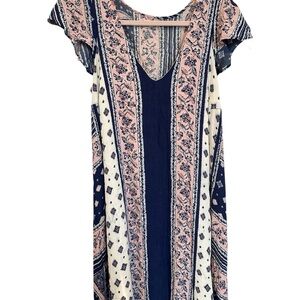 Anthropologie Maeve Size S Summertide Swing Tide Midi Dress Rayon Patchwork Boho