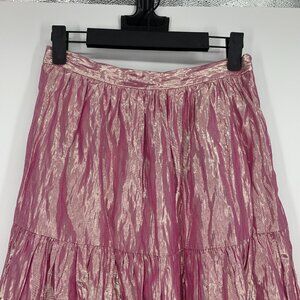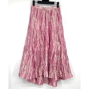 Anthropologie Maeve Skirt Womens Size 2 Alicia Pink Crinkled Metallic Maxi.