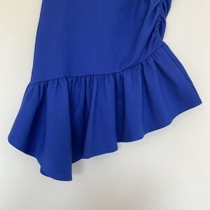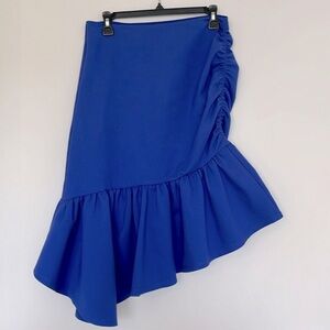 Anthropologie Maeve Slim Flounce Skirt Asymmetrical Ruffle Hem Royal Blue Size M