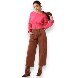 Anthropologie Maeve Smock Crop Boatneck Pullover Sweatshirt Pink Rose Medium