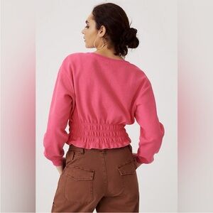 Anthropologie Maeve Smocked Waist Long Sleeve Pink Top