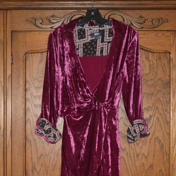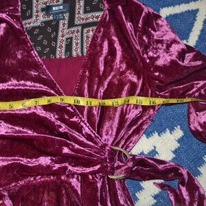 Anthropologie Maeve Sofia Velvet Faux Wrap Belt Shirt Dress Raspberry Pink Sz 6