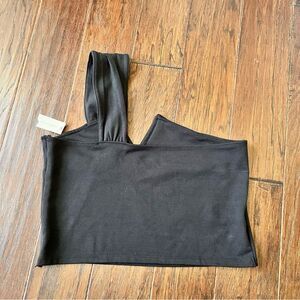 Anthropologie Maeve Solid black one shoulder crop top v notch Size Large NWT