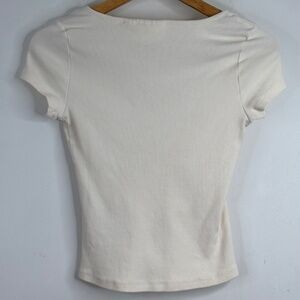 Anthropologie Maeve Square Neck Babydoll T Shirt S White Ribbed Stretch Y2K Boho