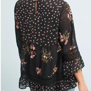 Anthropologie Maeve Steffy Bell Sleeve Floral Blouse in Black Combo sz small