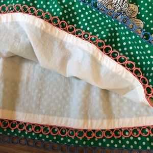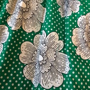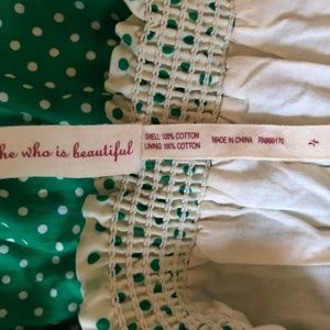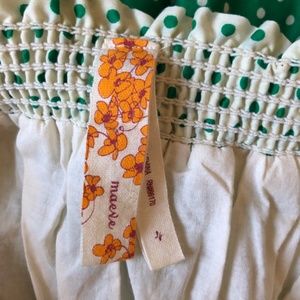 EUC Maeve strapless green dress with a gorgeous polka dot and floral fabric. Smocked at top and waist in light pink and blue thread matching detailing at the bottom. It is very stretchy. Skirt has a lining. Measures 14" pit to pit, 11" waist, 31.5" in length. 100% Cotton. Comes from a non-smoking pet friendly home. Feel free to message me with any questions! Happy Shopping!