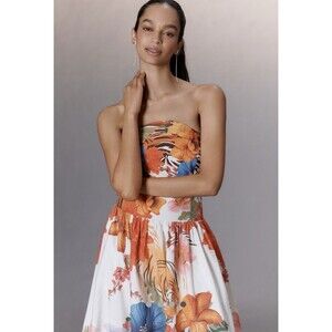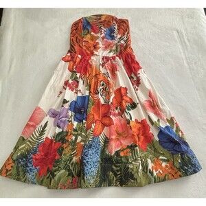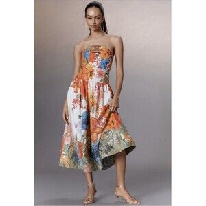 Anthropologie Maeve Strapless Tiger Printed Midi Dress Sz Lg Orange