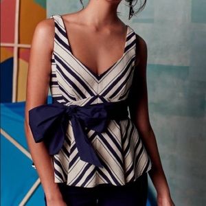 Adorable navy and cream striped peplum top from Anthropologie. Size 4, only worn once! Sash is separate so you can wear with or without, put the bow in the front or back, or make it a knot - however you want!