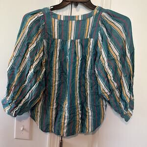 Anthropologie Maeve Striped Brenda Peasant Balloon Sleeve Blouse