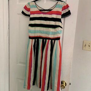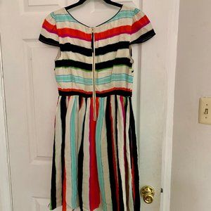 Selling Anthropologie Maeve Striped Dress in Size 2. This is a fabulous dress and I always receive compliments when I wear it!! Has hidden pockets and a zipper back. Well loved, but in great condition. Small repair done by professional tailor to the sleeve, not noticeable in the slightest.