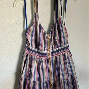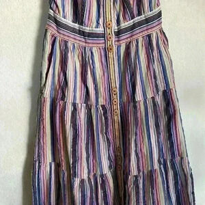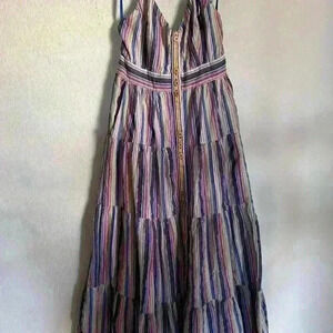 Anthropologie Maeve Striped Halter Tiered Cottagecore Button Front Maxi Dress 2