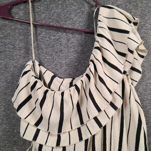 Anthropologie Maeve Striped One Shoulder Tie Waist Top Women's Medium. The tie for the belt is missing but the loops are still there.