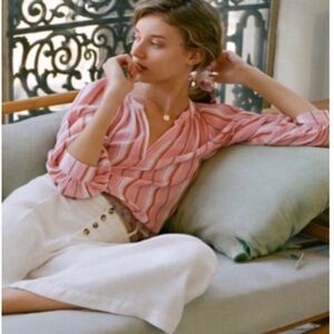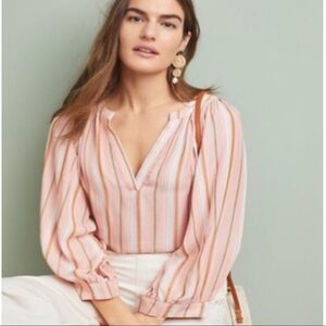 Anthropologie Maeve Striped Pullover Peasant Blouse