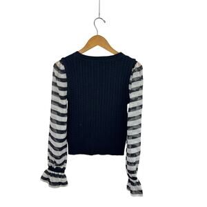 Soft black cable knit, striped long sleeves in sheer chiffon, size XS.
