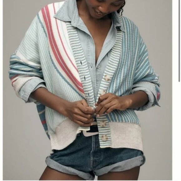 Anthropologie Maeve Stripy Sweater Cardigan size S